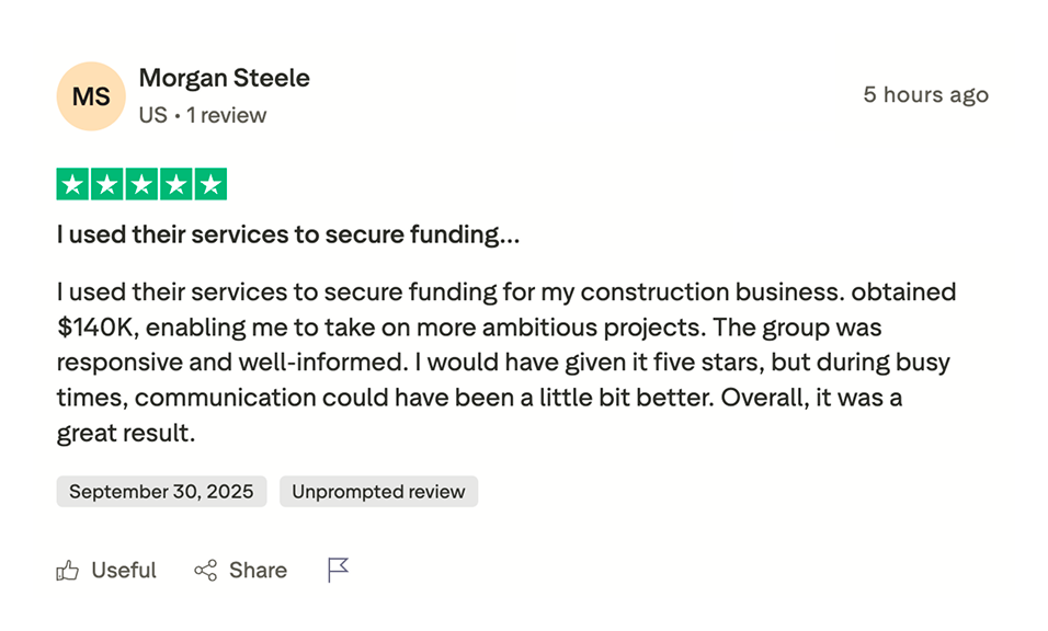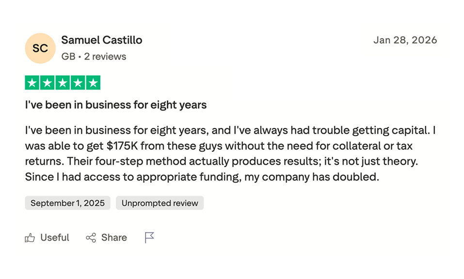 Most qualified clients secure between $50K and $250K, with the majority landing around $150K. Actual results depend on credit profile, business structure, location, and lender decisions.