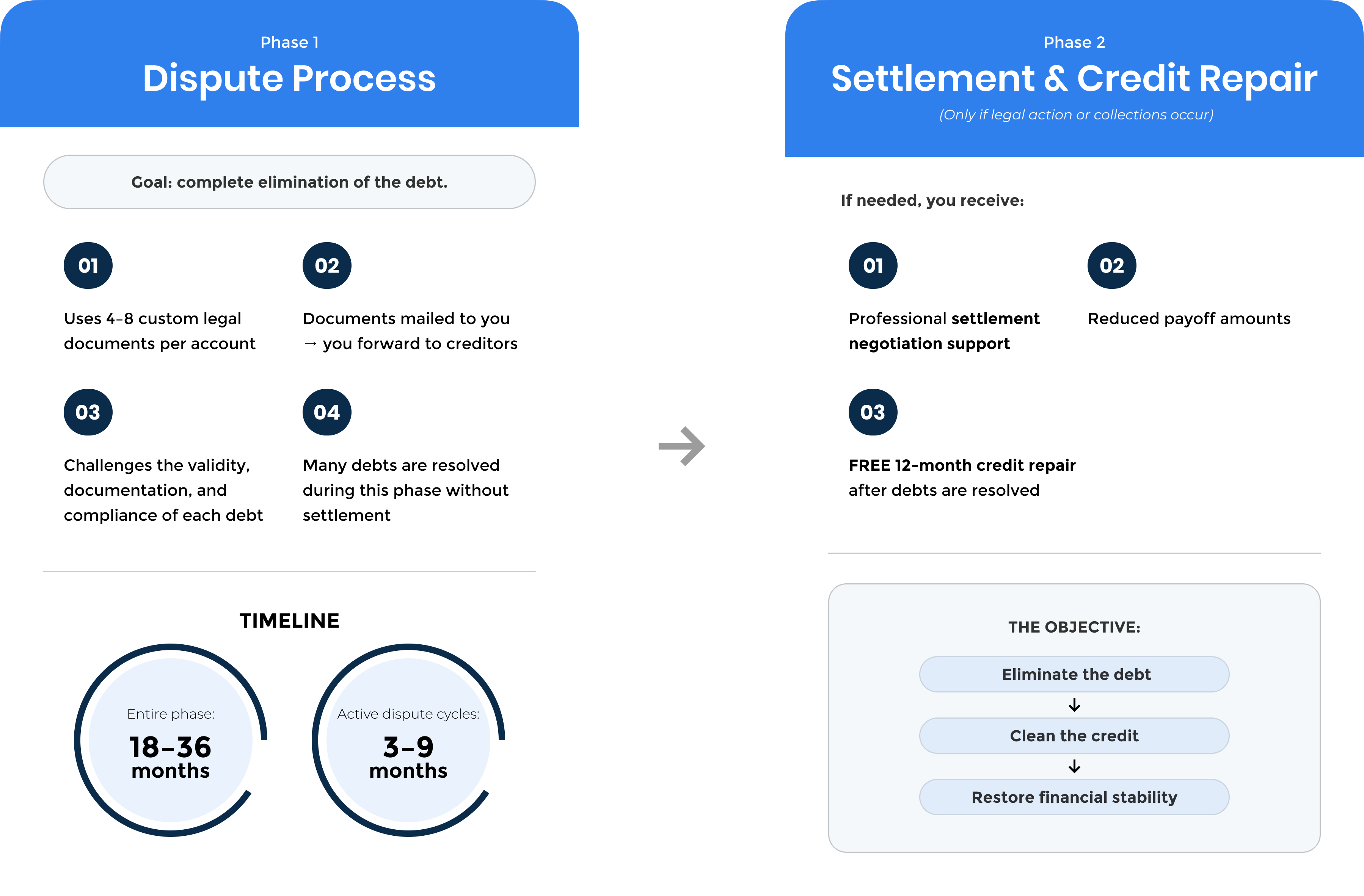 Two-phase approach (Dispute → Settlement if needed)