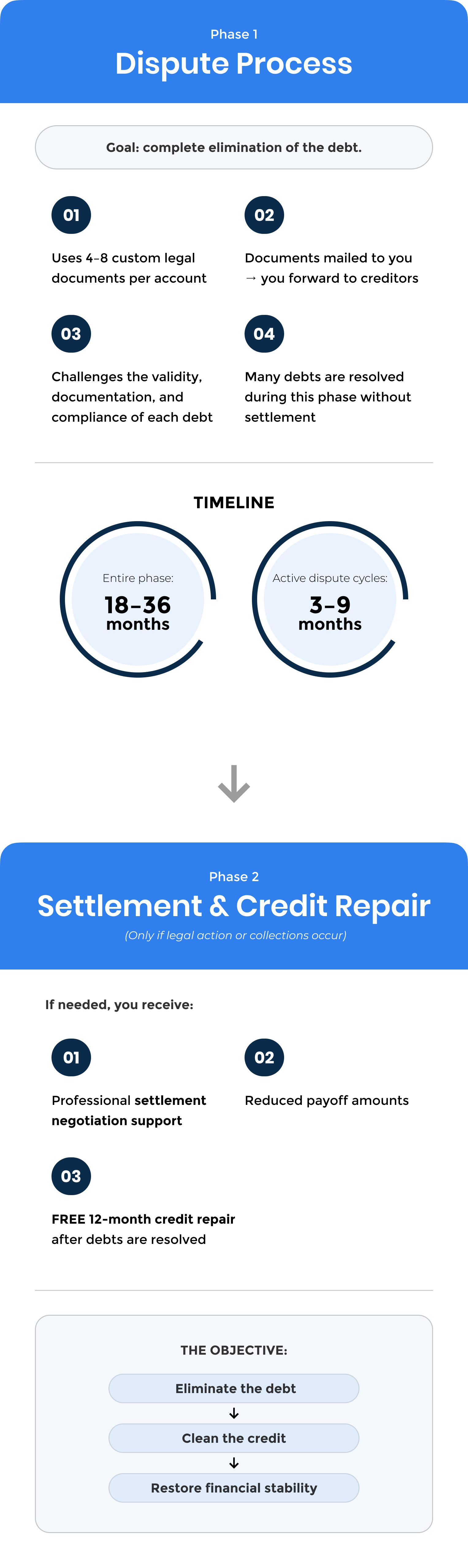 Program length: 2–3 years including credit repair